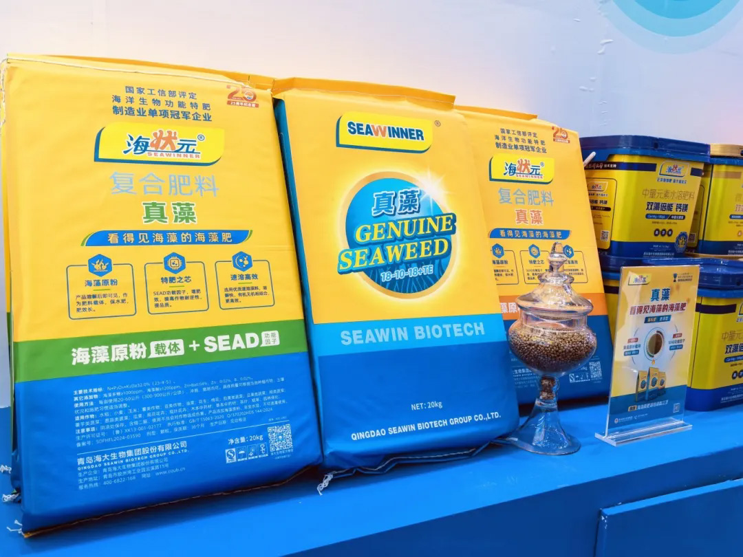 核心原料褐藻海帶、綠藻滸苔、鱈魚皮、牡蠣殼在展廳主位展示,這些主推產(chǎn)品和核心原料不僅成為行業(yè)的關(guān)注點,更成為客戶、用戶種植致勝的法寶。